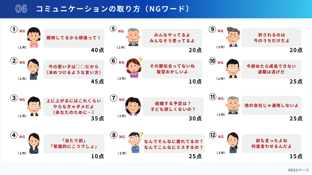 本講演には、会場・オンライン合わせて60名(会場30名、オンライン30名)の社員の皆様にご参加いただきました。ハラスメント防止に関する講義では、参加者が苦笑したり頷いたりと様々な反応がありました。また、1社で退職代行モームリが157回利用された事例には驚きの声が上がりました。